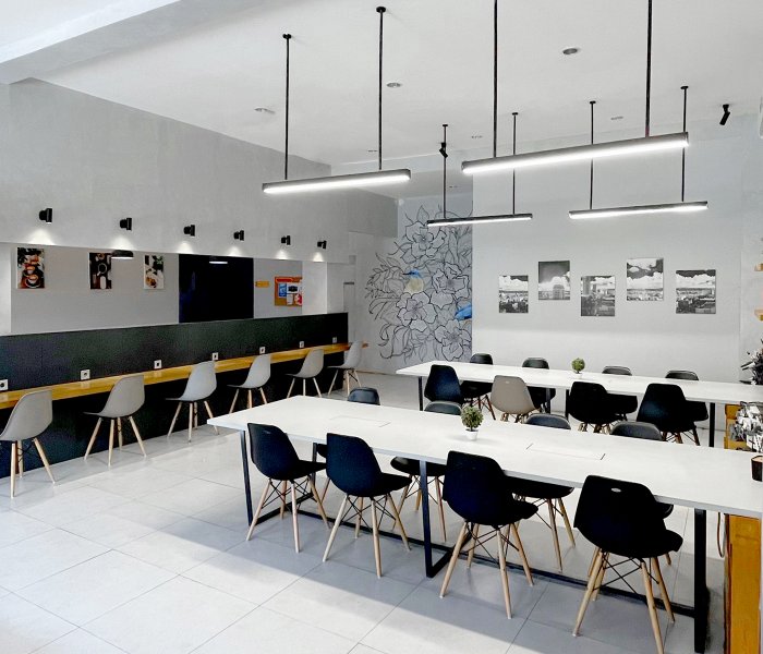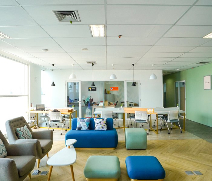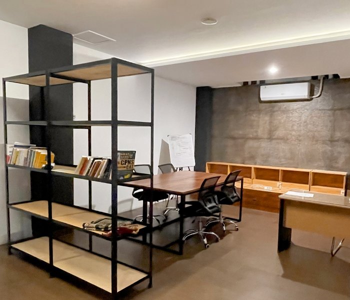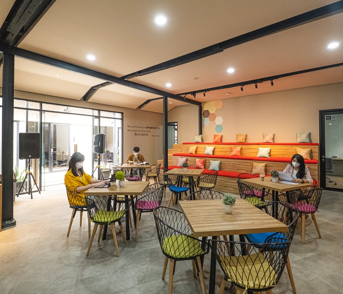 Suatu area yang berfungsi sebagai ruang kerja, berkomunitas, hingga beristirahat. Memiliki fasilitas yang lengkap dan nyaman seperti meja, kursi, sofa, area bermain, hingga pantry bagi para pelaku bisnis hingga pekerja lepas ataupun independen.
